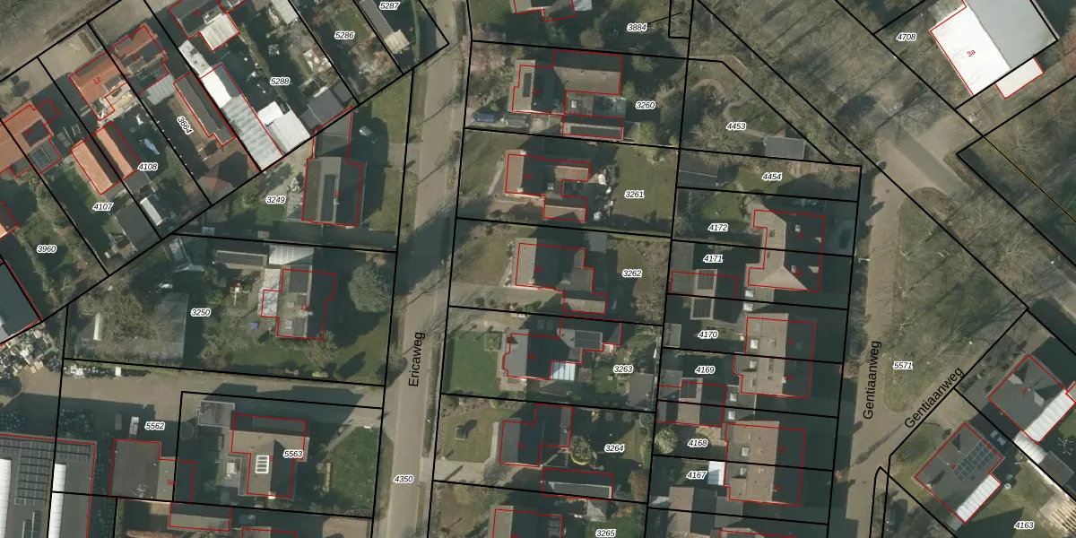 Het perceel waarop Ericaweg 20 staat heeft een oppervlakte van 659 m². Dit is een groot perceel. De perceeloppervlakte wordt geregistreerd door het Kadaster. Gedetailleerde informatie over de maten van dit perceel kunt u vinden in het rapport Kadastrale kaart met maatvoering van Ericaweg 20.
