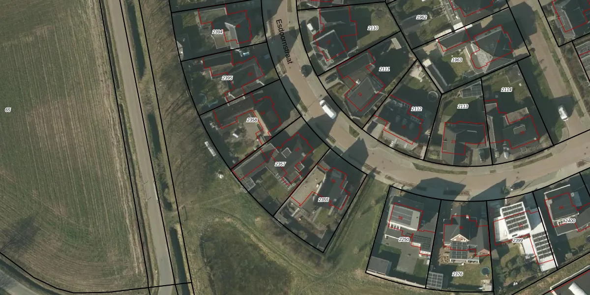 Gebruik de zoekbalk of klik op een perceel voor informatie over de adressen binnen dit perceel.