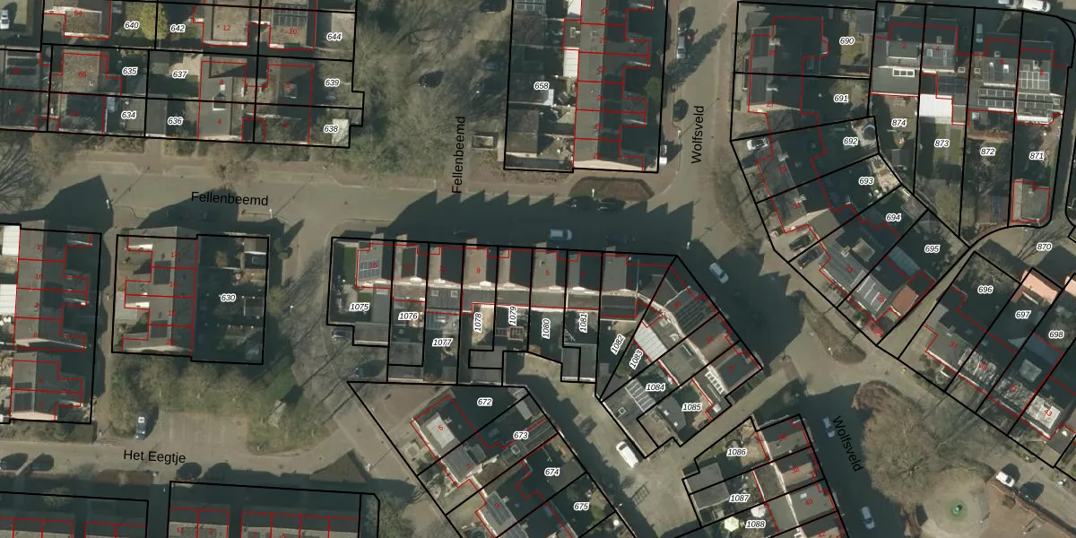 Gebruik de zoekbalk of klik op een perceel voor informatie over de adressen binnen dit perceel.
