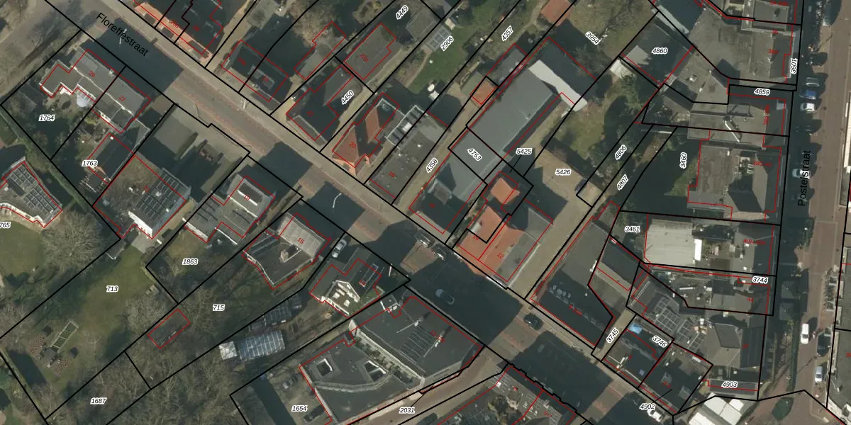 Het perceel waarop Floreffestraat 16 staat heeft een oppervlakte van 349 m². Dit is een groot perceel. De perceeloppervlakte wordt geregistreerd door het Kadaster. Gedetailleerde informatie over de maten van dit perceel kunt u vinden in het rapport Kadastrale kaart met maatvoering van Floreffestraat 16.
