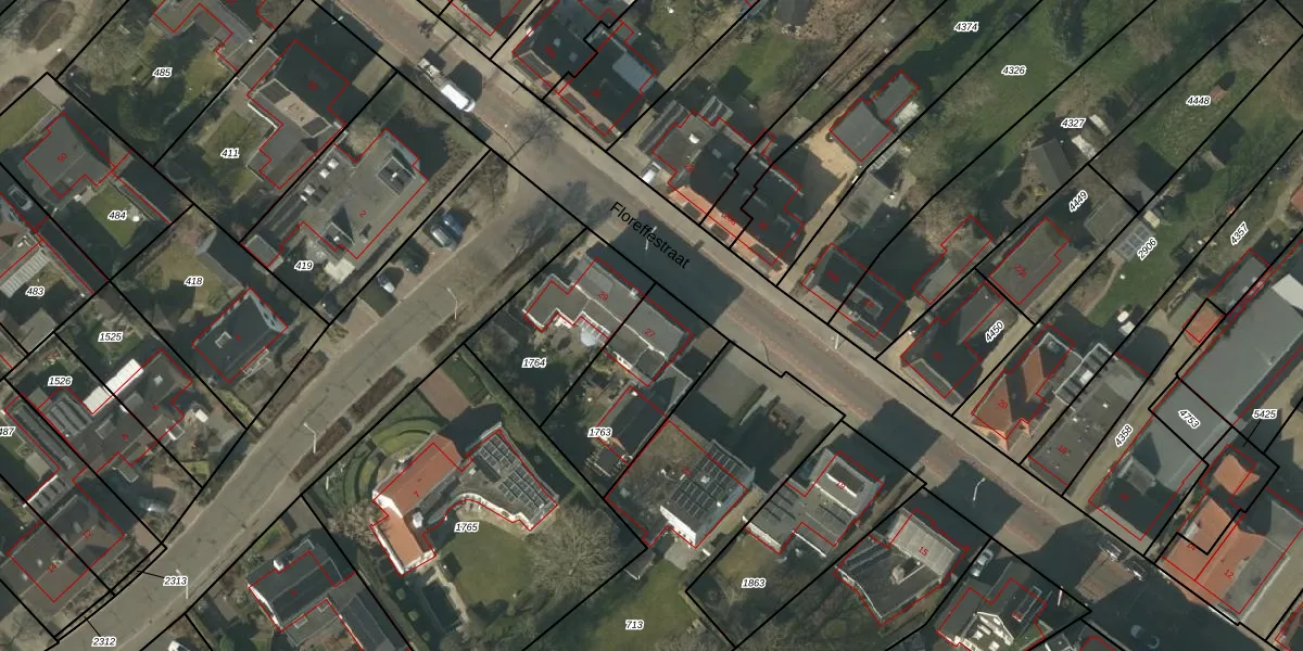 Het perceel waarop Floreffestraat 27 staat heeft een oppervlakte van 435 m². Dit is een groot perceel. De perceeloppervlakte wordt geregistreerd door het Kadaster. Gedetailleerde informatie over de maten van dit perceel kunt u vinden in het rapport Kadastrale kaart met maatvoering van Floreffestraat 27.