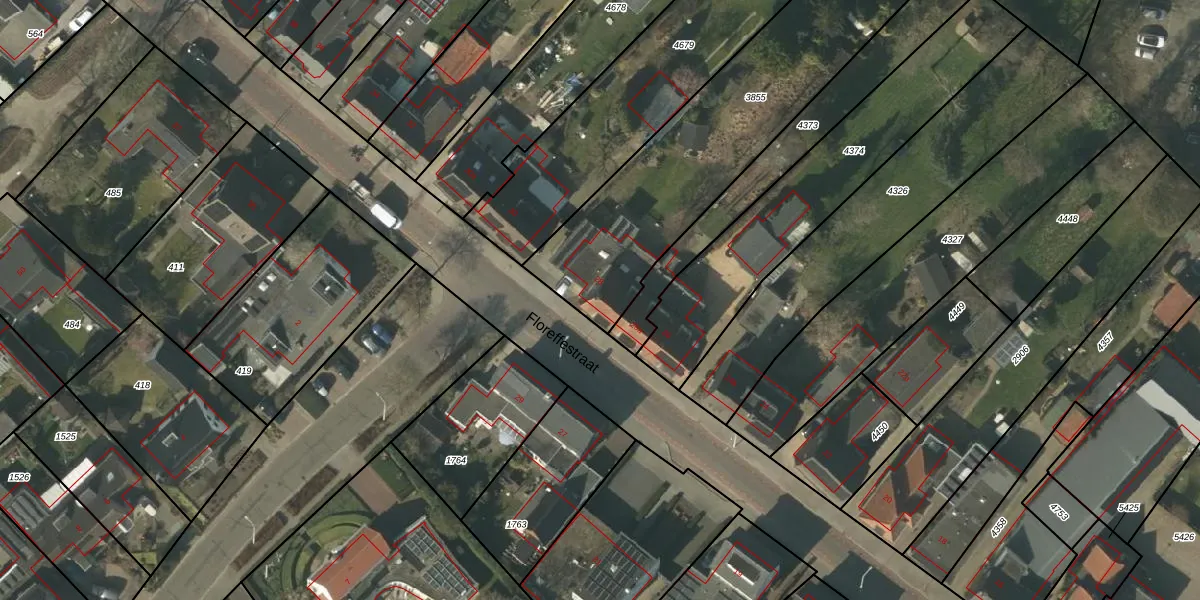 Gebruik de zoekbalk of klik op een perceel voor informatie over de adressen binnen dit perceel.