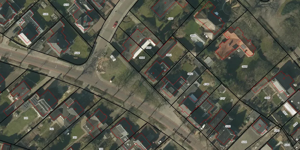 Het perceel waarop Floreffestraat 76 staat heeft een oppervlakte van 495 m². Dit is een groot perceel. De perceeloppervlakte wordt geregistreerd door het Kadaster. Gedetailleerde informatie over de maten van dit perceel kunt u vinden in het rapport Kadastrale kaart met maatvoering van Floreffestraat 76.