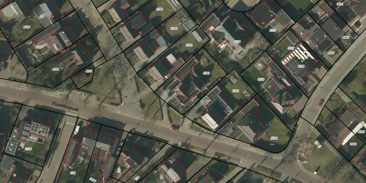 Floreffestraat 82 is gelegen op kadastraal perceel SMR02B5180. Deze kadastrale aanduiding is uniek en wordt gebruikt door het Kadaster om eigendomsrechten en andere zakelijke rechten vast te leggen. Het perceel maakt onderdeel uit van de kadastrale gemeente Someren.