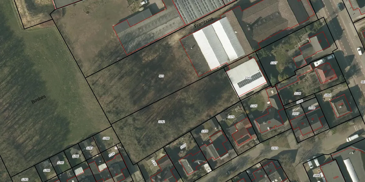 Het perceel waarop Framboos 39 staat heeft een oppervlakte van 1585 m². Dit is een zeer groot perceel. De perceeloppervlakte wordt geregistreerd door het Kadaster. Gedetailleerde informatie over de maten van dit perceel kunt u vinden in het rapport Kadastrale kaart met maatvoering van Framboos 39.