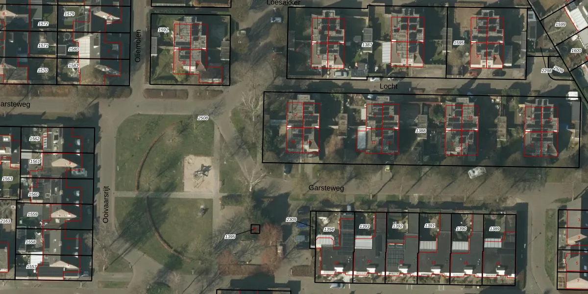 Het perceel waarop Garsteweg 16 staat heeft een oppervlakte van 2596 m². Dit is een zeer groot perceel. De perceeloppervlakte wordt geregistreerd door het Kadaster. Gedetailleerde informatie over de maten van dit perceel kunt u vinden in het rapport Kadastrale kaart met maatvoering van Garsteweg 16.