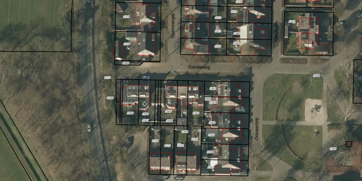 Gebruik de zoekbalk of klik op een perceel voor informatie over de adressen binnen dit perceel.