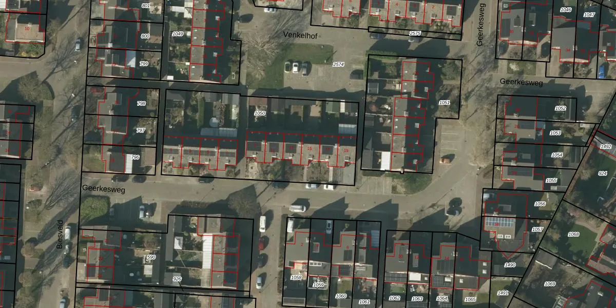 Geerkesweg 15 is gelegen op kadastraal perceel SMR02S1050. Deze kadastrale aanduiding is uniek en wordt gebruikt door het Kadaster om eigendomsrechten en andere zakelijke rechten vast te leggen. Het perceel maakt onderdeel uit van de kadastrale gemeente Someren.