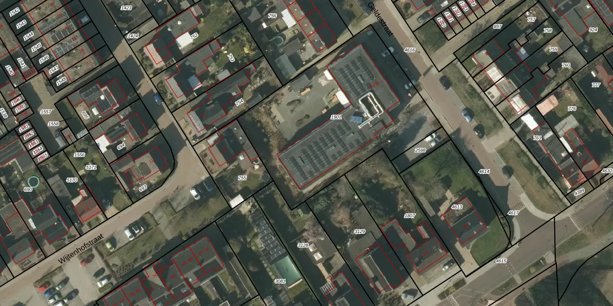 Het perceel waarop Geldestraat 11-d staat heeft een oppervlakte van 2030 m². Dit is een zeer groot perceel. De perceeloppervlakte wordt geregistreerd door het Kadaster. Gedetailleerde informatie over de maten van dit perceel kunt u vinden in het rapport Kadastrale kaart met maatvoering van Geldestraat 11-d.