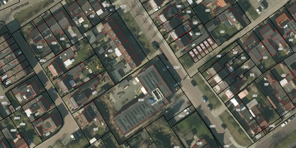 Het perceel waarop Geldestraat 11-k staat heeft een oppervlakte van 2030 m². Dit is een zeer groot perceel. De perceeloppervlakte wordt geregistreerd door het Kadaster. Gedetailleerde informatie over de maten van dit perceel kunt u vinden in het rapport Kadastrale kaart met maatvoering van Geldestraat 11-k.