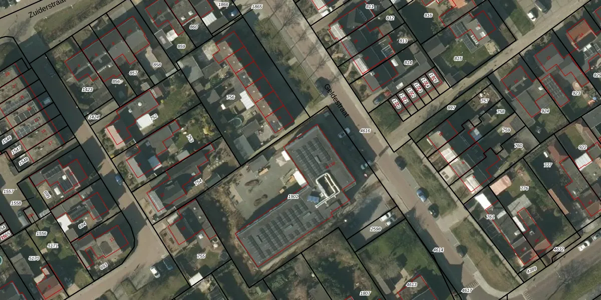 Het perceel waarop Geldestraat 9-h staat heeft een oppervlakte van 2030 m². Dit is een zeer groot perceel. De perceeloppervlakte wordt geregistreerd door het Kadaster. Gedetailleerde informatie over de maten van dit perceel kunt u vinden in het rapport Kadastrale kaart met maatvoering van Geldestraat 9-h.