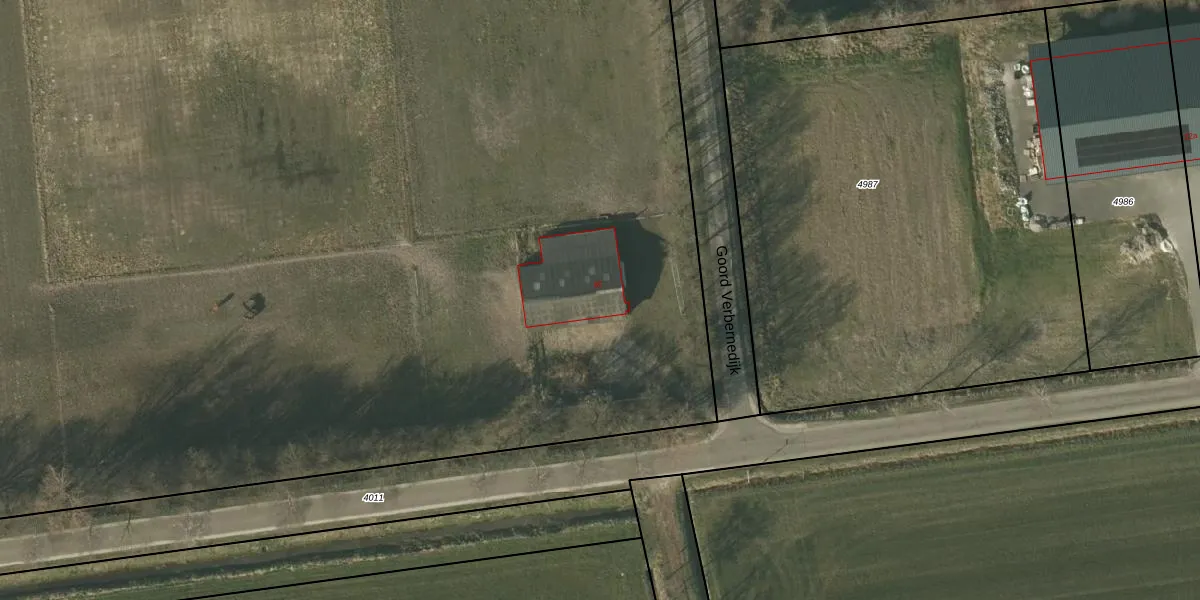 Het perceel waarop Goord Verbernedijk 80 staat heeft een oppervlakte van 3,5 ha. Dit is een zeer groot perceel. De perceeloppervlakte wordt geregistreerd door het Kadaster. Gedetailleerde informatie over de maten van dit perceel kunt u vinden in het rapport Kadastrale kaart met maatvoering van Goord Verbernedijk 80.