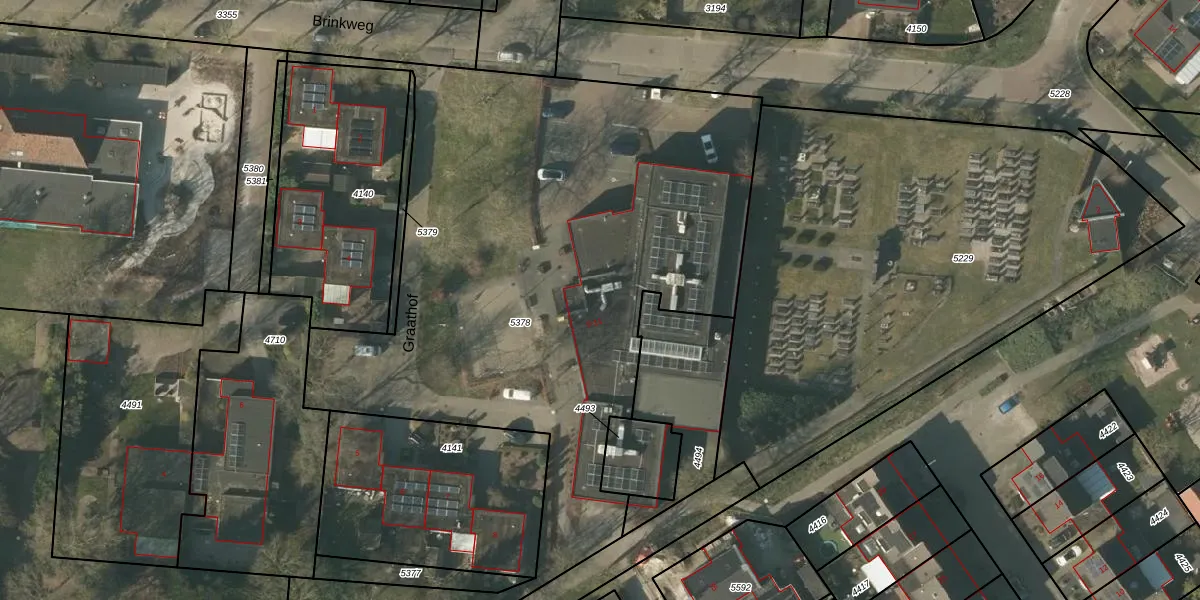 Het perceel waarop Graathof 9 staat heeft een oppervlakte van 4030 m². Dit is een zeer groot perceel. De perceeloppervlakte wordt geregistreerd door het Kadaster. Gedetailleerde informatie over de maten van dit perceel kunt u vinden in het rapport Kadastrale kaart met maatvoering van Graathof 9.