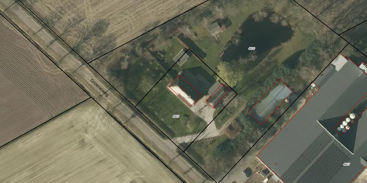 Groeneweg 21 is gelegen op kadastraal perceel SMR02G4825. Deze kadastrale aanduiding is uniek en wordt gebruikt door het Kadaster om eigendomsrechten en andere zakelijke rechten vast te leggen. Het perceel maakt onderdeel uit van de kadastrale gemeente Someren.