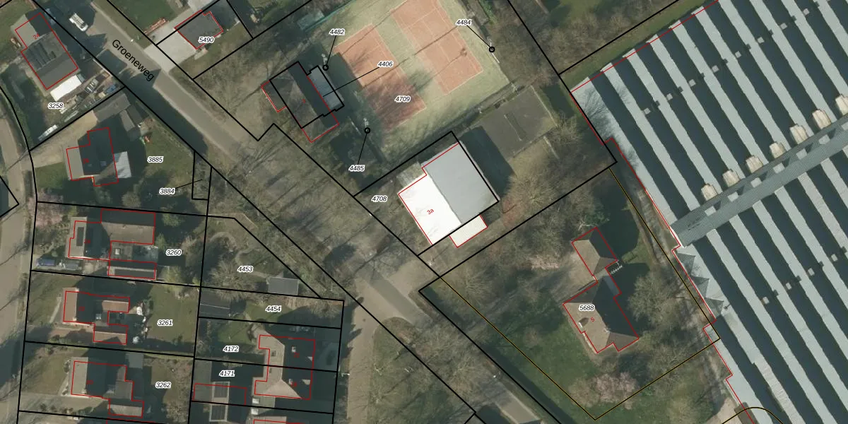 Groeneweg 3-a is gelegen op kadastraal perceel SMR02G4708. Deze kadastrale aanduiding is uniek en wordt gebruikt door het Kadaster om eigendomsrechten en andere zakelijke rechten vast te leggen. Het perceel maakt onderdeel uit van de kadastrale gemeente Someren.
