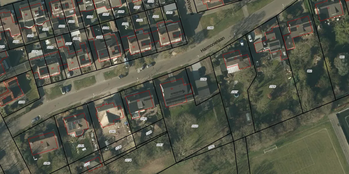 Het perceel waarop Harmonielaan 21 staat heeft een oppervlakte van 1330 m². Dit is een zeer groot perceel. De perceeloppervlakte wordt geregistreerd door het Kadaster. Gedetailleerde informatie over de maten van dit perceel kunt u vinden in het rapport Kadastrale kaart met maatvoering van Harmonielaan 21.