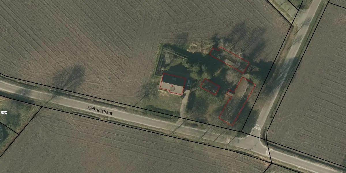 Het perceel waarop Heikantstraat 21 staat heeft een oppervlakte van 2,0 ha. Dit is een zeer groot perceel. De perceeloppervlakte wordt geregistreerd door het Kadaster. Gedetailleerde informatie over de maten van dit perceel kunt u vinden in het rapport Kadastrale kaart met maatvoering van Heikantstraat 21.