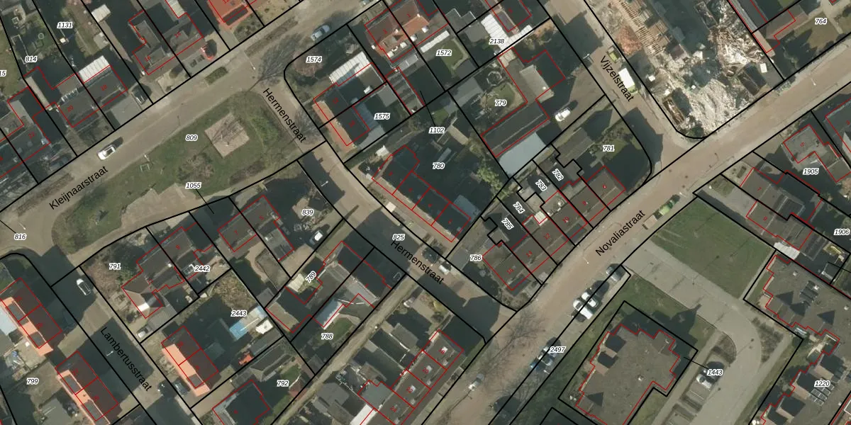 Het perceel waarop Hermenstraat 4 staat heeft een oppervlakte van 810 m². Dit is een groot perceel. De perceeloppervlakte wordt geregistreerd door het Kadaster. Gedetailleerde informatie over de maten van dit perceel kunt u vinden in het rapport Kadastrale kaart met maatvoering van Hermenstraat 4.