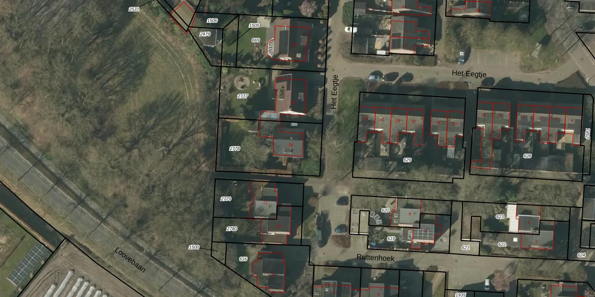 Het perceel waarop Het Eegtje 25 staat heeft een oppervlakte van 616 m². Dit is een groot perceel. De perceeloppervlakte wordt geregistreerd door het Kadaster. Gedetailleerde informatie over de maten van dit perceel kunt u vinden in het rapport Kadastrale kaart met maatvoering van Het Eegtje 25.