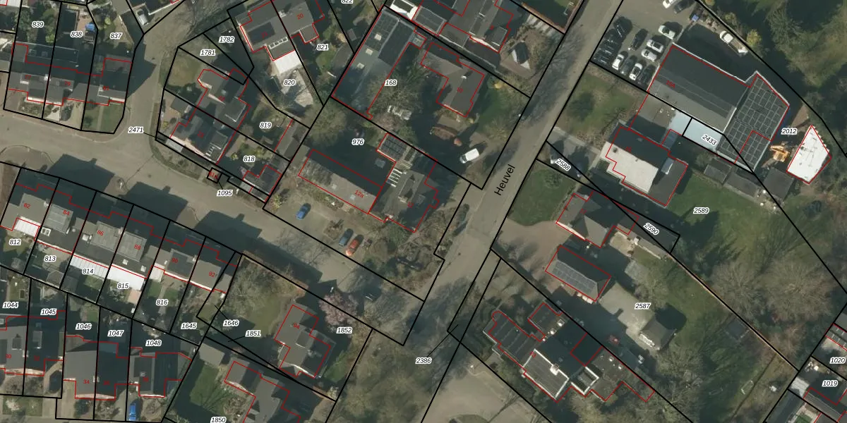 Het perceel waarop Heuvel 12 staat heeft een oppervlakte van 1264 m². Dit is een zeer groot perceel. De perceeloppervlakte wordt geregistreerd door het Kadaster. Gedetailleerde informatie over de maten van dit perceel kunt u vinden in het rapport Kadastrale kaart met maatvoering van Heuvel 12.