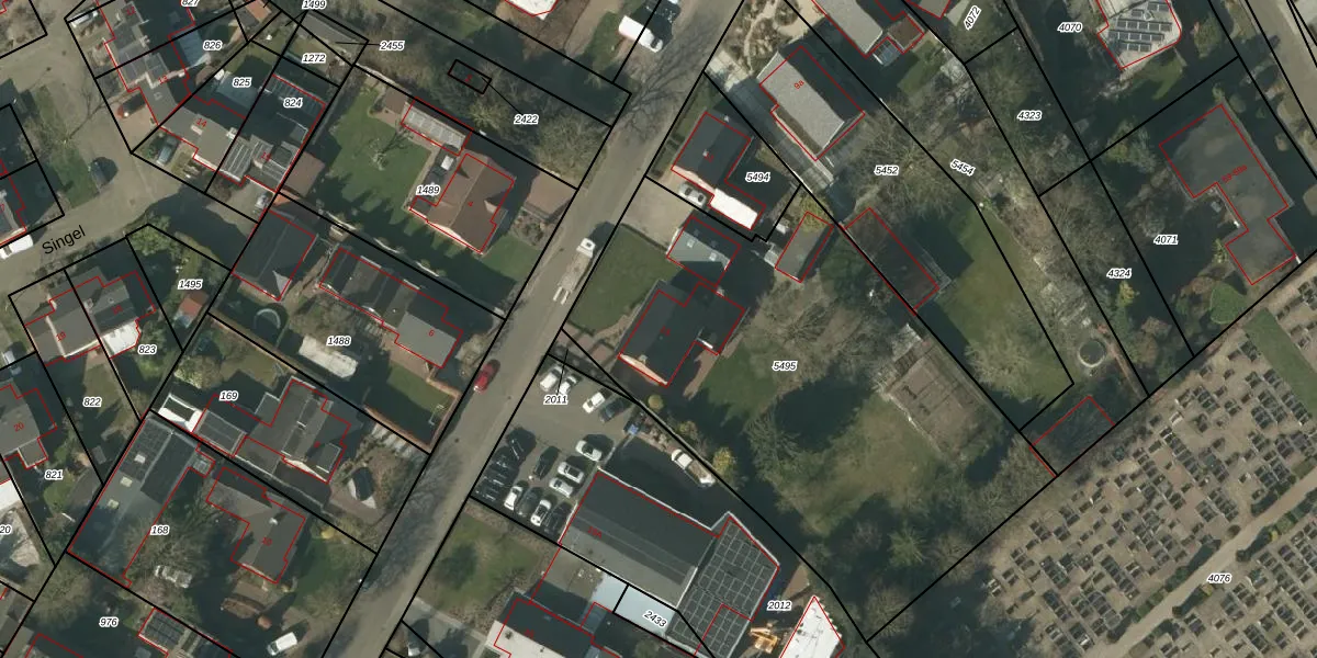 Gebruik de zoekbalk of klik op een perceel voor informatie over de adressen binnen dit perceel.