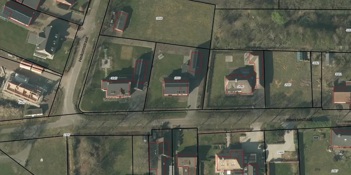 Hoeksestraat 14 is gelegen op kadastraal perceel SMR02S2859. Deze kadastrale aanduiding is uniek en wordt gebruikt door het Kadaster om eigendomsrechten en andere zakelijke rechten vast te leggen. Het perceel maakt onderdeel uit van de kadastrale gemeente Someren.