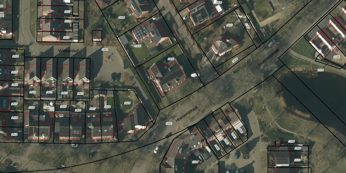 Het perceel waarop Hoevenstraat 12 staat heeft een oppervlakte van 839 m². Dit is een groot perceel. De perceeloppervlakte wordt geregistreerd door het Kadaster. Gedetailleerde informatie over de maten van dit perceel kunt u vinden in het rapport Kadastrale kaart met maatvoering van Hoevenstraat 12.