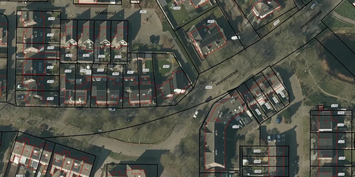 Het perceel waarop Hoevenstraat 16 staat heeft een oppervlakte van 481 m². Dit is een groot perceel. De perceeloppervlakte wordt geregistreerd door het Kadaster. Gedetailleerde informatie over de maten van dit perceel kunt u vinden in het rapport Kadastrale kaart met maatvoering van Hoevenstraat 16.