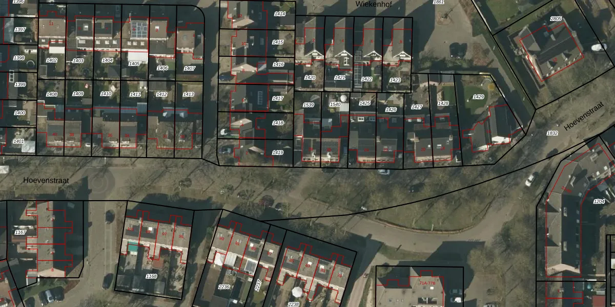 Gebruik de zoekbalk of klik op een perceel voor informatie over de adressen binnen dit perceel.
