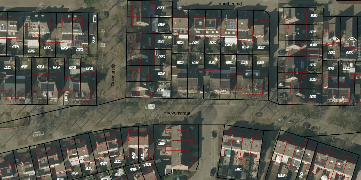 Gebruik de zoekbalk of klik op een perceel voor informatie over de adressen binnen dit perceel.