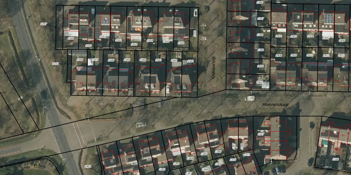 Gebruik de zoekbalk of klik op een perceel voor informatie over de adressen binnen dit perceel.