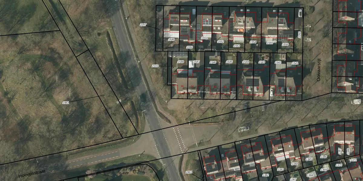 Het perceel waarop Hoevenstraat 56 staat heeft een oppervlakte van 239 m². Dit is een middelgroot perceel. De perceeloppervlakte wordt geregistreerd door het Kadaster. Gedetailleerde informatie over de maten van dit perceel kunt u vinden in het rapport Kadastrale kaart met maatvoering van Hoevenstraat 56.