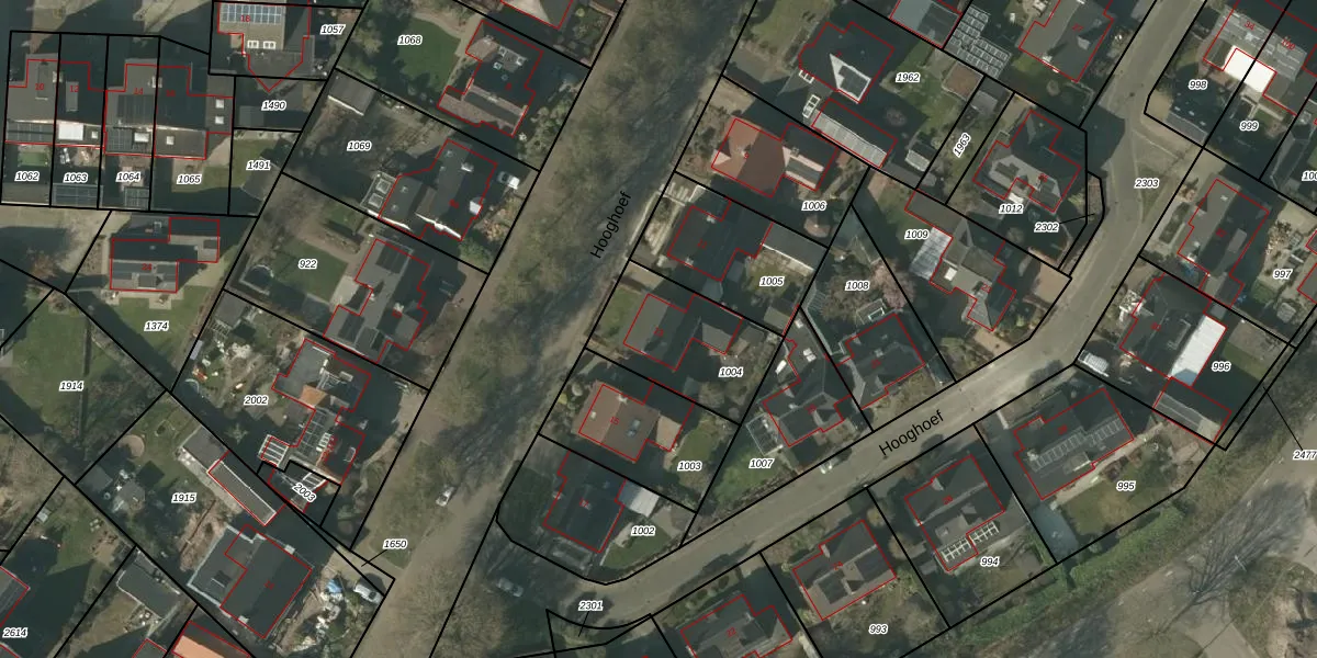Het perceel waarop Hooghoef 13 staat heeft een oppervlakte van 394 m². Dit is een groot perceel. De perceeloppervlakte wordt geregistreerd door het Kadaster. Gedetailleerde informatie over de maten van dit perceel kunt u vinden in het rapport Kadastrale kaart met maatvoering van Hooghoef 13.