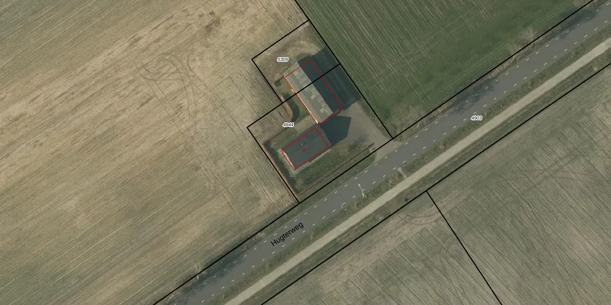 Het perceel waarop Hugterweg 12 staat heeft een oppervlakte van 1120 m². Dit is een zeer groot perceel. De perceeloppervlakte wordt geregistreerd door het Kadaster. Gedetailleerde informatie over de maten van dit perceel kunt u vinden in het rapport Kadastrale kaart met maatvoering van Hugterweg 12.