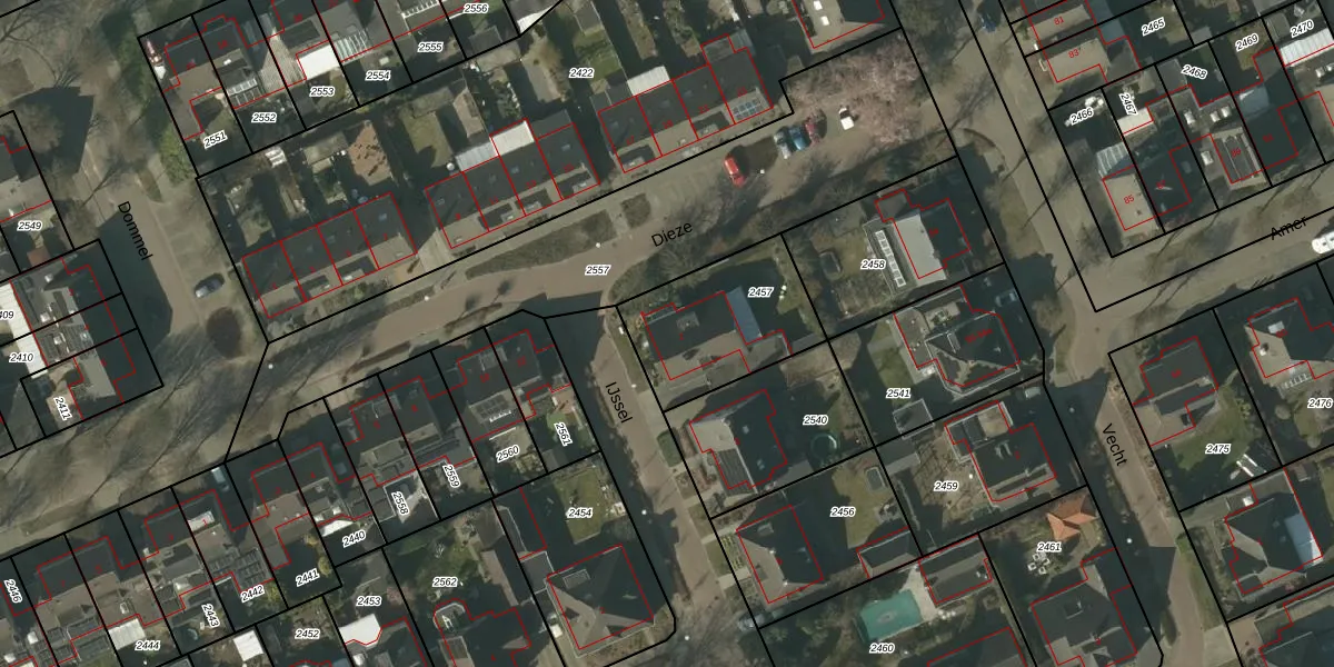 Gebruik de zoekbalk of klik op een perceel voor informatie over de adressen binnen dit perceel.