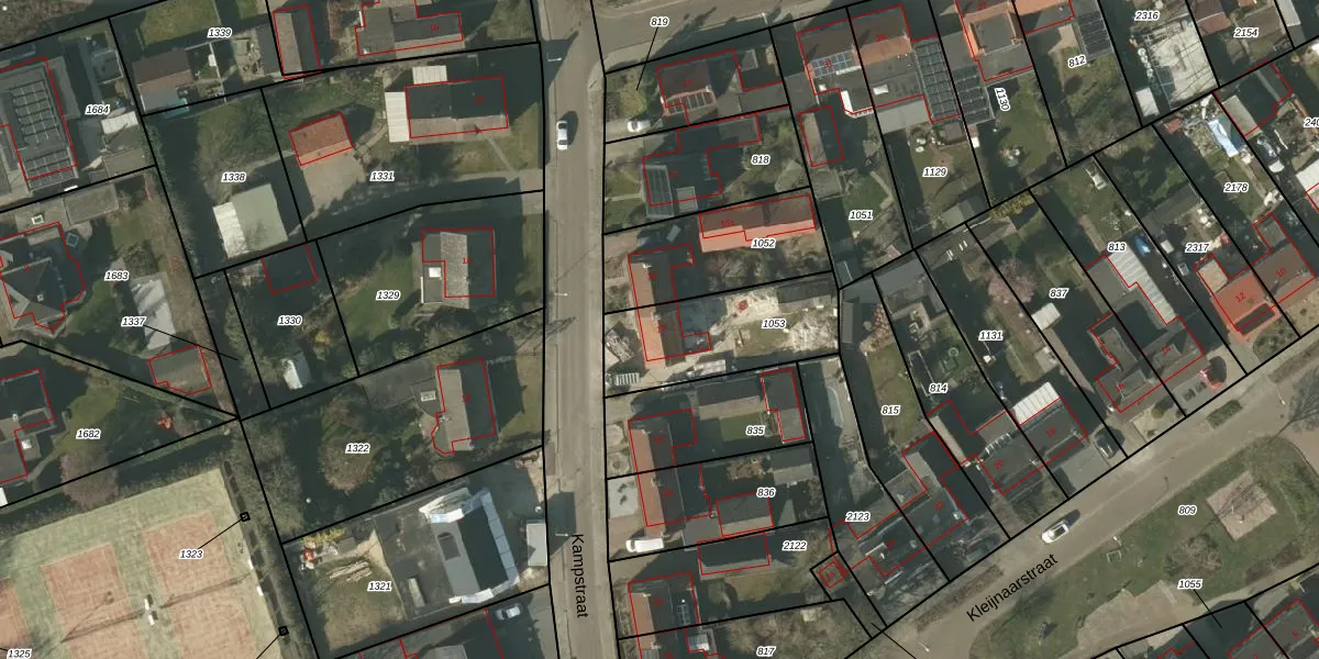 Het perceel waarop Kampstraat 17 staat heeft een oppervlakte van 455 m². Dit is een groot perceel. De perceeloppervlakte wordt geregistreerd door het Kadaster. Gedetailleerde informatie over de maten van dit perceel kunt u vinden in het rapport Kadastrale kaart met maatvoering van Kampstraat 17.