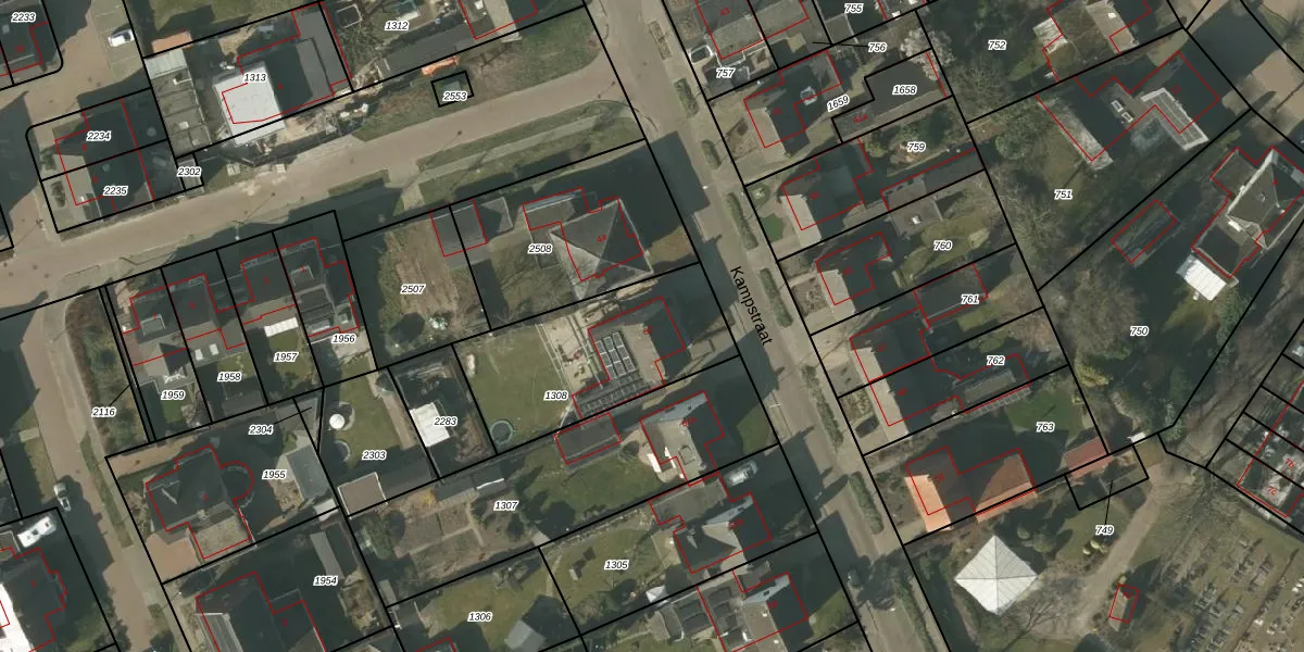Het perceel waarop Kampstraat 52 staat heeft een oppervlakte van 696 m². Dit is een groot perceel. De perceeloppervlakte wordt geregistreerd door het Kadaster. Gedetailleerde informatie over de maten van dit perceel kunt u vinden in het rapport Kadastrale kaart met maatvoering van Kampstraat 52.