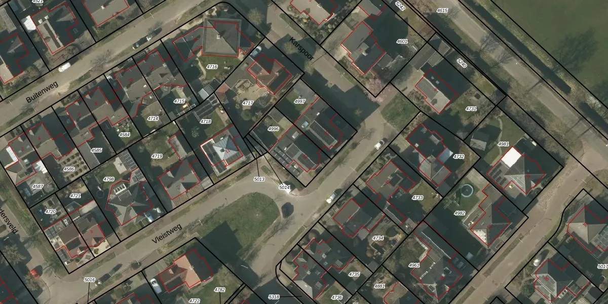 Het perceel waarop Karspoor 12 staat heeft een oppervlakte van 323 m². Dit is een groot perceel. De perceeloppervlakte wordt geregistreerd door het Kadaster. Gedetailleerde informatie over de maten van dit perceel kunt u vinden in het rapport Kadastrale kaart met maatvoering van Karspoor 12.