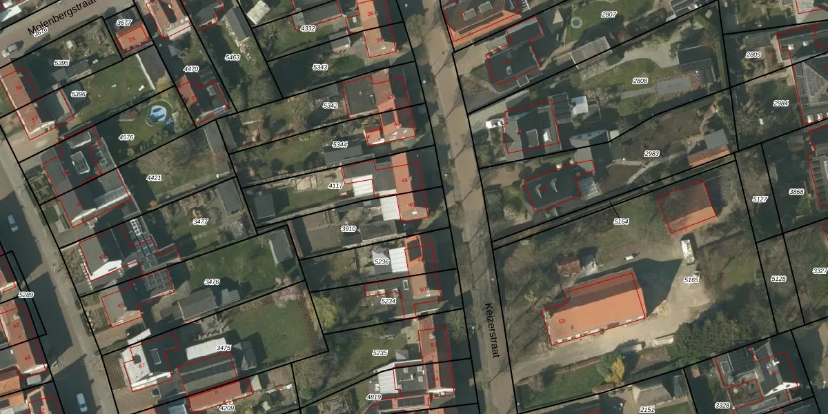 Het perceel waarop Keizerstraat 46 staat heeft een oppervlakte van 409 m². Dit is een groot perceel. De perceeloppervlakte wordt geregistreerd door het Kadaster. Gedetailleerde informatie over de maten van dit perceel kunt u vinden in het rapport Kadastrale kaart met maatvoering van Keizerstraat 46.