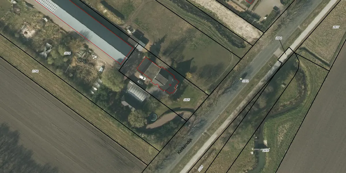 Het perceel waarop Kerkendijk 46 staat heeft een oppervlakte van 975 m². Dit is een groot perceel. De perceeloppervlakte wordt geregistreerd door het Kadaster. Gedetailleerde informatie over de maten van dit perceel kunt u vinden in het rapport Kadastrale kaart met maatvoering van Kerkendijk 46.