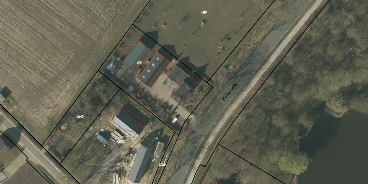 Het perceel waarop Kerkendijk 54 staat heeft een oppervlakte van 1740 m². Dit is een zeer groot perceel. De perceeloppervlakte wordt geregistreerd door het Kadaster. Gedetailleerde informatie over de maten van dit perceel kunt u vinden in het rapport Kadastrale kaart met maatvoering van Kerkendijk 54.