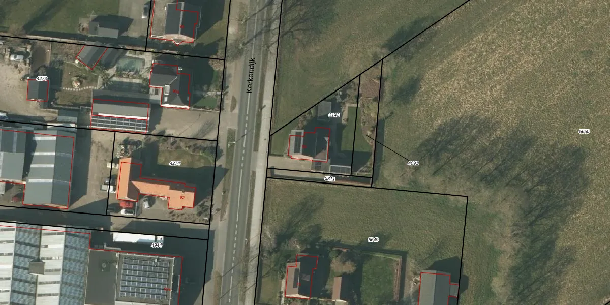 Het perceel waarop Kerkendijk 65 staat heeft een oppervlakte van 608 m². Dit is een groot perceel. De perceeloppervlakte wordt geregistreerd door het Kadaster. Gedetailleerde informatie over de maten van dit perceel kunt u vinden in het rapport Kadastrale kaart met maatvoering van Kerkendijk 65.