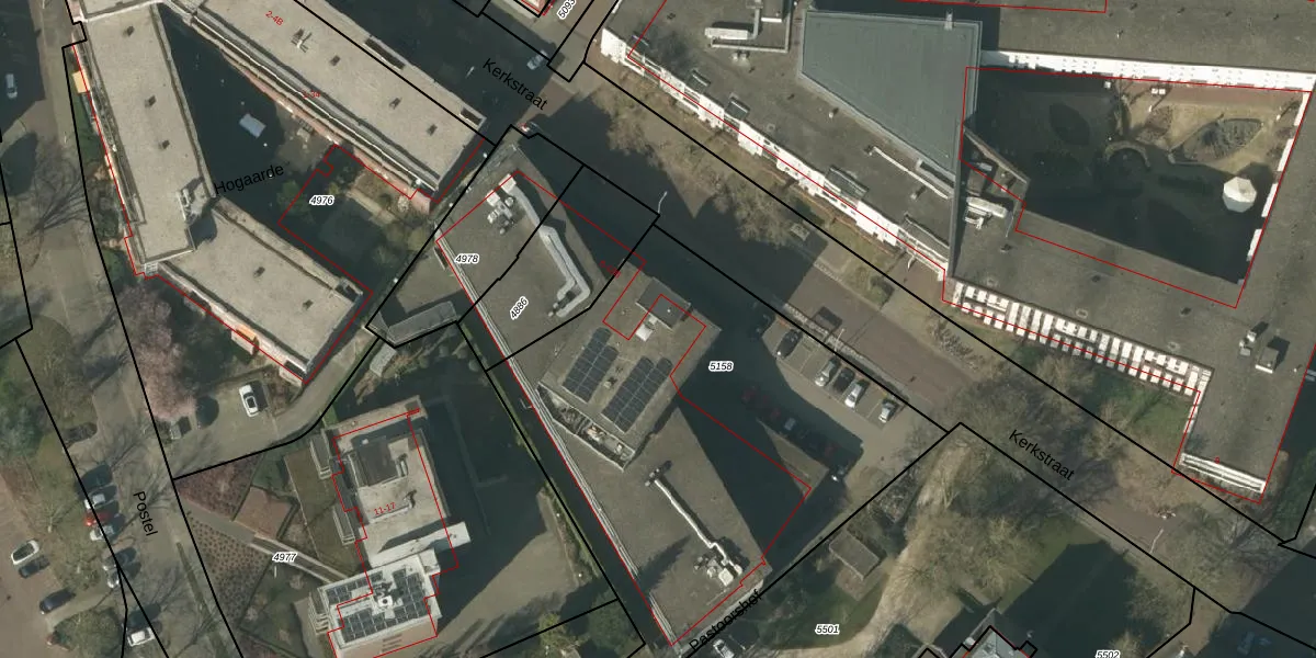 Kerkstraat 12-b is gelegen op kadastraal perceel SMR02B5158. Deze kadastrale aanduiding is uniek en wordt gebruikt door het Kadaster om eigendomsrechten en andere zakelijke rechten vast te leggen. Het perceel maakt onderdeel uit van de kadastrale gemeente Someren.