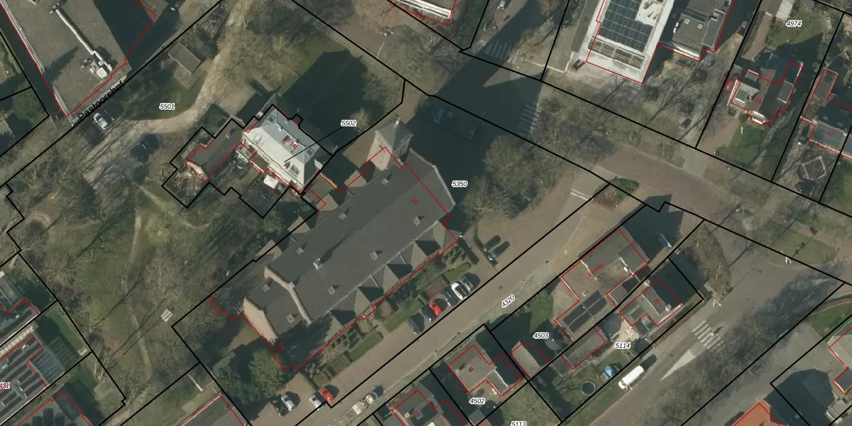 Gebruik de zoekbalk of klik op een perceel voor informatie over de adressen binnen dit perceel.