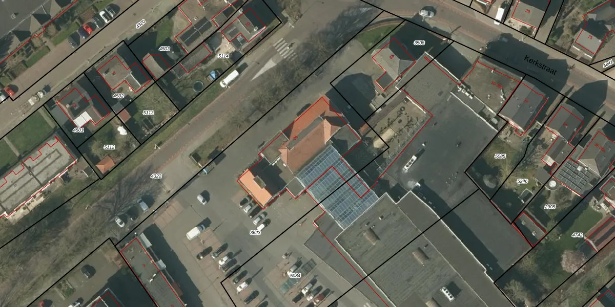Het perceel waarop Kerkstraat 26 staat heeft een oppervlakte van 4335 m². Dit is een zeer groot perceel. De perceeloppervlakte wordt geregistreerd door het Kadaster. Gedetailleerde informatie over de maten van dit perceel kunt u vinden in het rapport Kadastrale kaart met maatvoering van Kerkstraat 26.