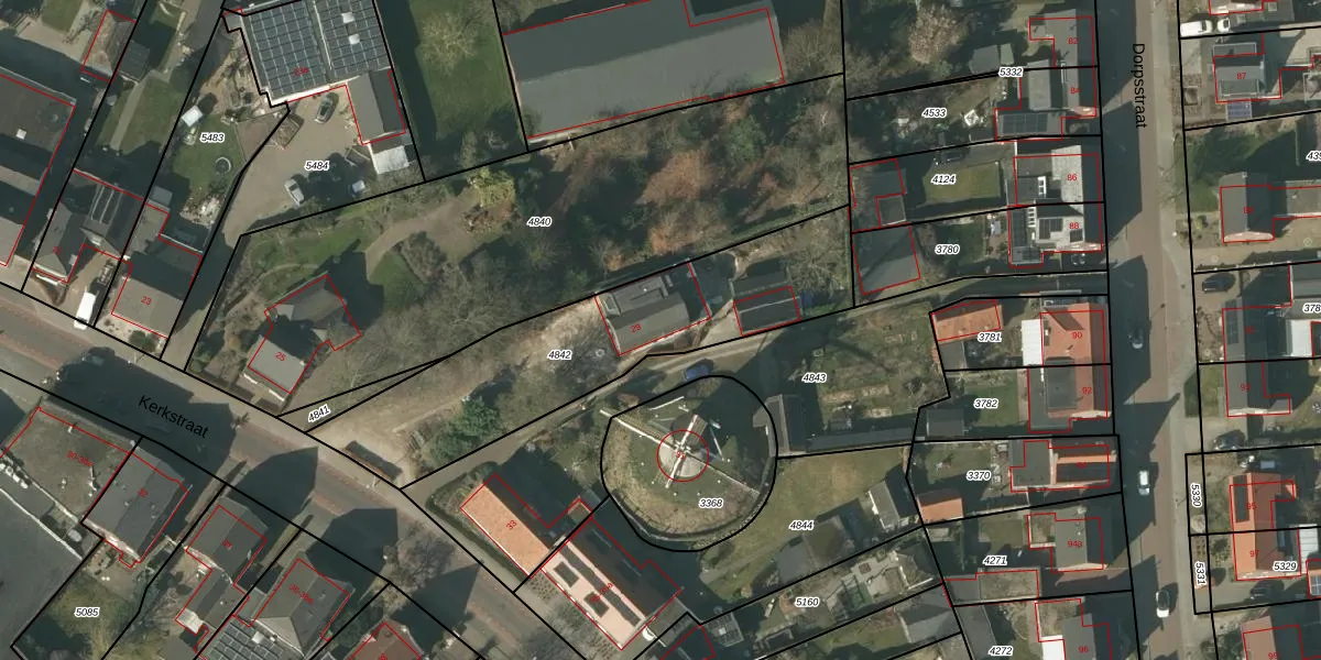 Het perceel waarop Kerkstraat 29 staat heeft een oppervlakte van 1151 m². Dit is een zeer groot perceel. De perceeloppervlakte wordt geregistreerd door het Kadaster. Gedetailleerde informatie over de maten van dit perceel kunt u vinden in het rapport Kadastrale kaart met maatvoering van Kerkstraat 29.