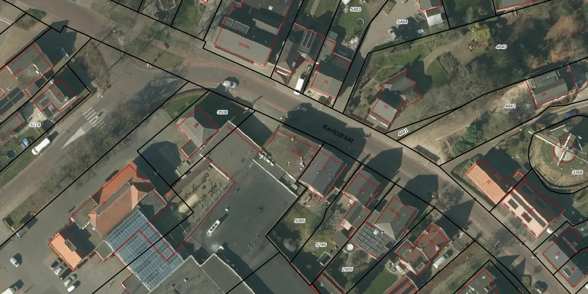 Het perceel waarop Kerkstraat 30-a staat heeft een oppervlakte van 3543 m². Dit is een zeer groot perceel. De perceeloppervlakte wordt geregistreerd door het Kadaster. Gedetailleerde informatie over de maten van dit perceel kunt u vinden in het rapport Kadastrale kaart met maatvoering van Kerkstraat 30-a.