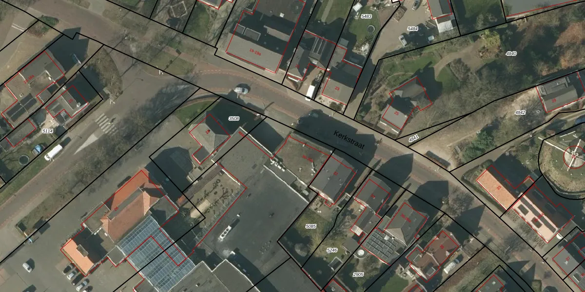 Het perceel waarop Kerkstraat 30-b staat heeft een oppervlakte van 3543 m². Dit is een zeer groot perceel. De perceeloppervlakte wordt geregistreerd door het Kadaster. Gedetailleerde informatie over de maten van dit perceel kunt u vinden in het rapport Kadastrale kaart met maatvoering van Kerkstraat 30-b.