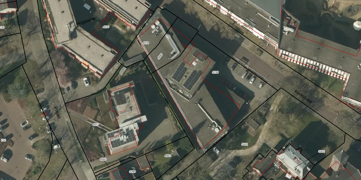 Het perceel waarop Kerkstraat 8-i staat heeft een oppervlakte van 2612 m². Dit is een zeer groot perceel. De perceeloppervlakte wordt geregistreerd door het Kadaster. Gedetailleerde informatie over de maten van dit perceel kunt u vinden in het rapport Kadastrale kaart met maatvoering van Kerkstraat 8-i.