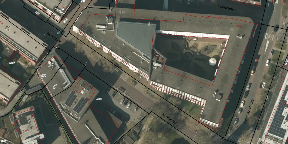 Het perceel waarop Kerkstraat 9 staat heeft een oppervlakte van 1,2 ha. Dit is een zeer groot perceel. De perceeloppervlakte wordt geregistreerd door het Kadaster. Gedetailleerde informatie over de maten van dit perceel kunt u vinden in het rapport Kadastrale kaart met maatvoering van Kerkstraat 9.